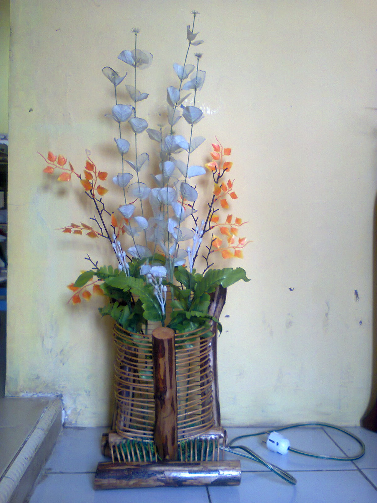 Contoh Hasil Kerajinan Vas bunga yang terbuat dari Rotan Dan Kayu